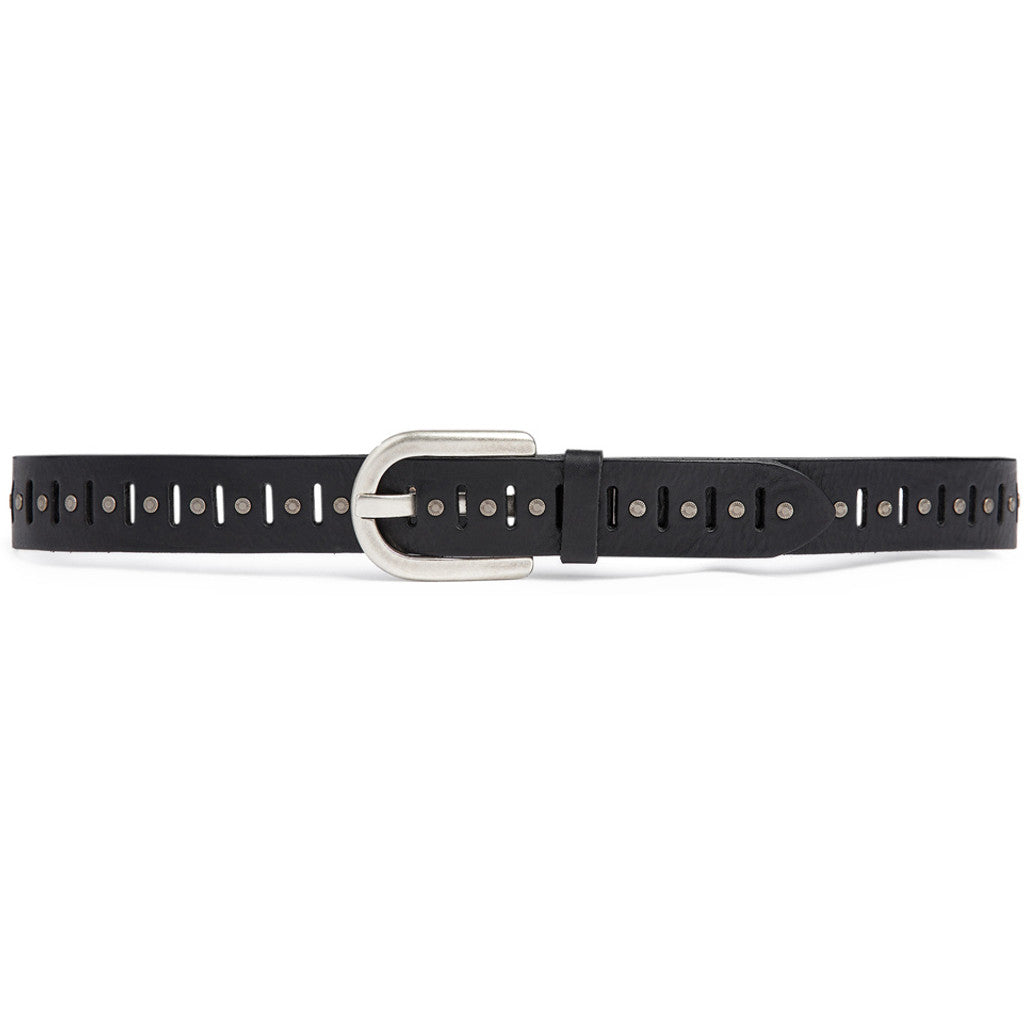 Add a raw and stylish touch to your outfit with this leather belt crafted from 100% high-quality leather. The belt is adorned with studs and holes throughout, creating a striking and contemporary look. With a width of 3.5 cm and a classic buckle, this belt is ideal for both everyday wear and special occasions.