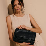 With dimensions of H: 20 x W: 28 x D: 11 cm, the bag is perfectly sized to store your daily essentials such as your wallet, phone, and other small items. It features a flap and snap button closure, providing secure storage and easy access to your belongings.