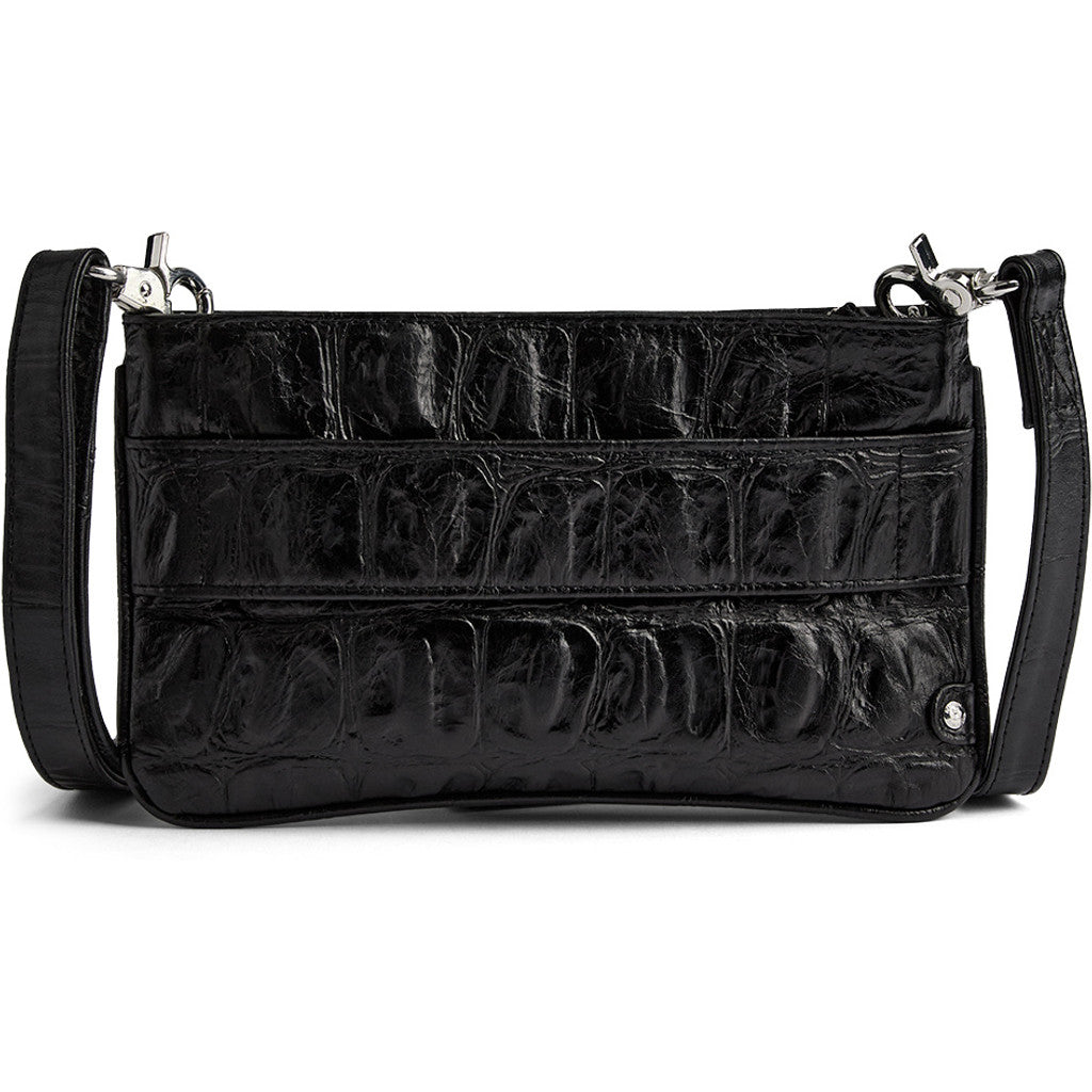 This croco-embossed leather clutch blends timeless elegance with a bold, modern edge. The textured surface adds depth and sophistication, making it an exclusive piece that elevates any outfit. A front leather strap detail completes the design with a refined touch.