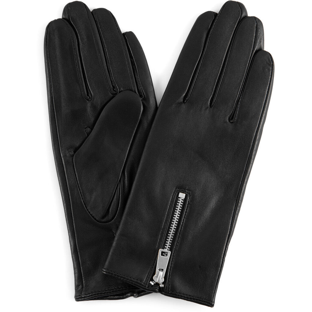 Cool glove in soft and delicious leather quality. The glove looks cool and raw as it is decorated with a zipper details on the front.