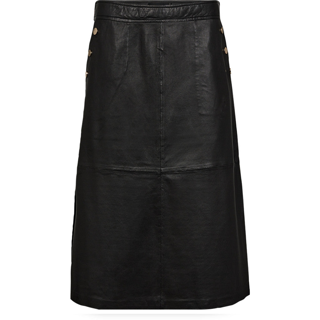 The Kenya skirt is crafted from soft and luxurious leather, offering a timeless and exclusive look. With its classic A-line silhouette and below-knee length, it is both elegant and versatile. The leather skirt is adorned with beautiful gold-colored buttons on each side, adding a sophisticated touch to the design. Functional side pockets combine practicality with style, and the discreet slit on the side provides freedom of movement and a feminine detail. The Kenya skirt closes with a hidden side zipper, ensuring a clean and streamlined appearance. Perfect for both everyday wear and special occasions, this skirt can be styled with anything from shirts to knitwear for a refined look.